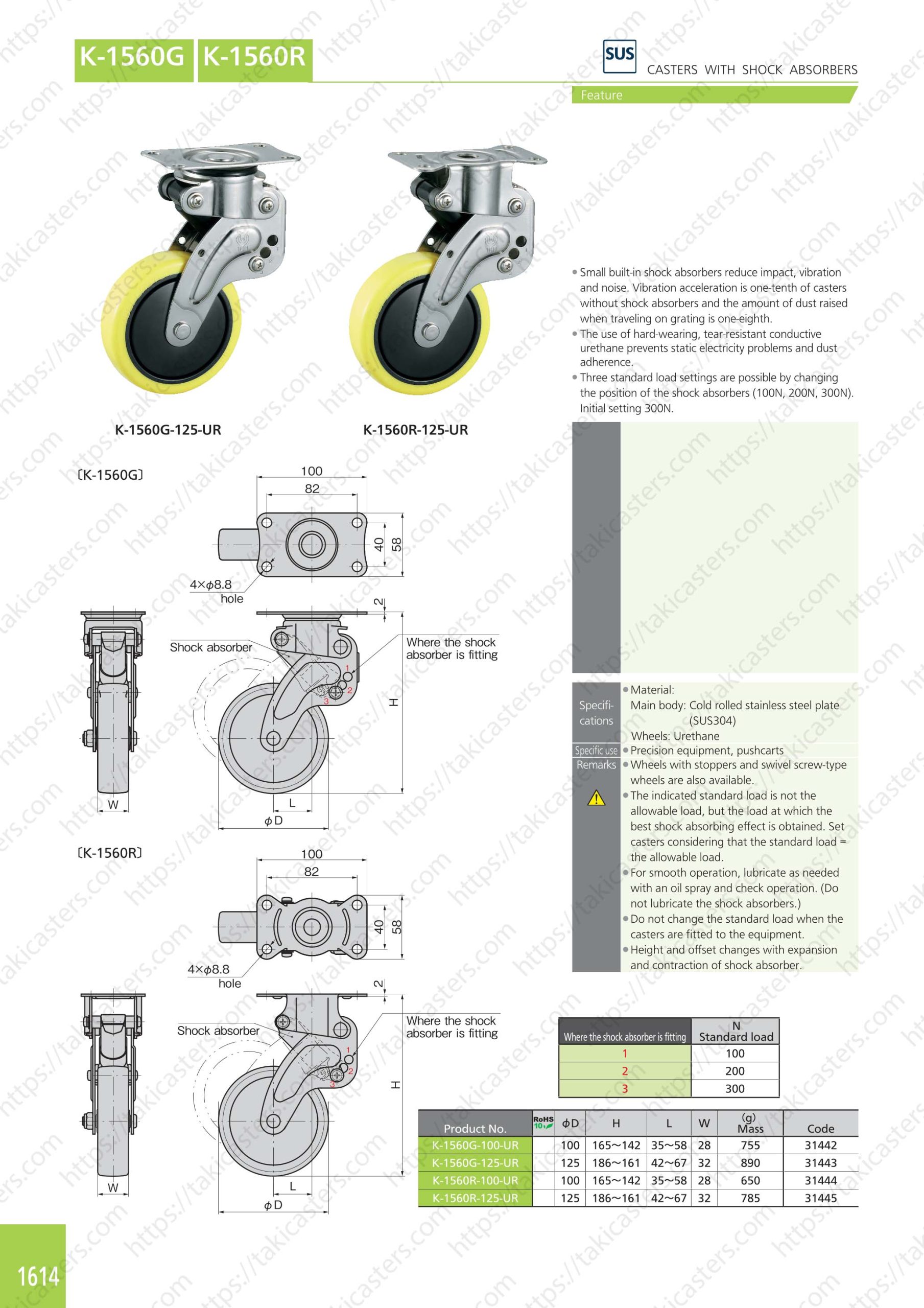 ●K-1560G-125-UR : Bánh xe Urethane φ125 (tải trọng cho phép 300N). Chiều cao 186 mm.
