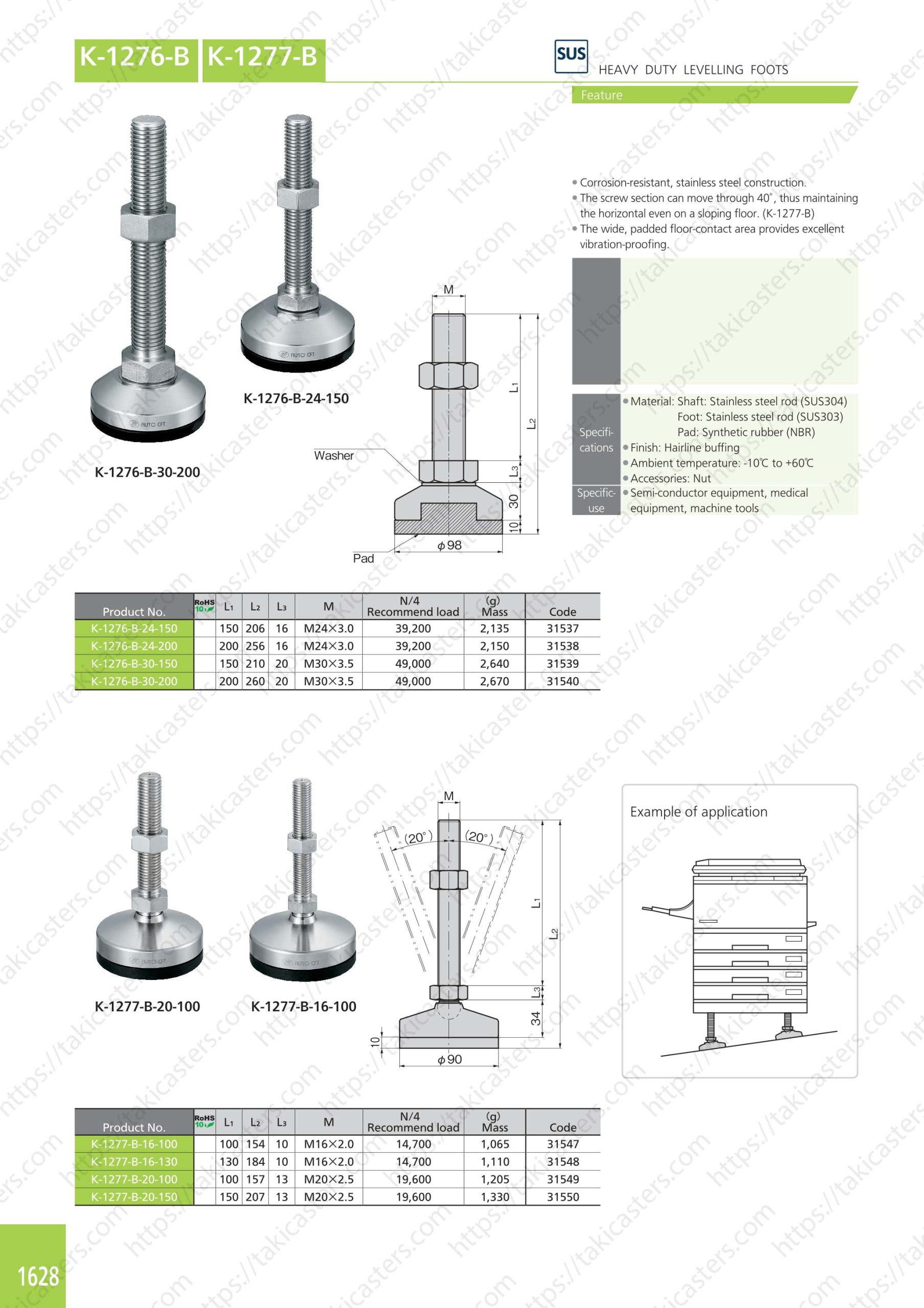 Chân tăng chỉnh bằng thép không gỉ dành cho tải nặng K-1277-B