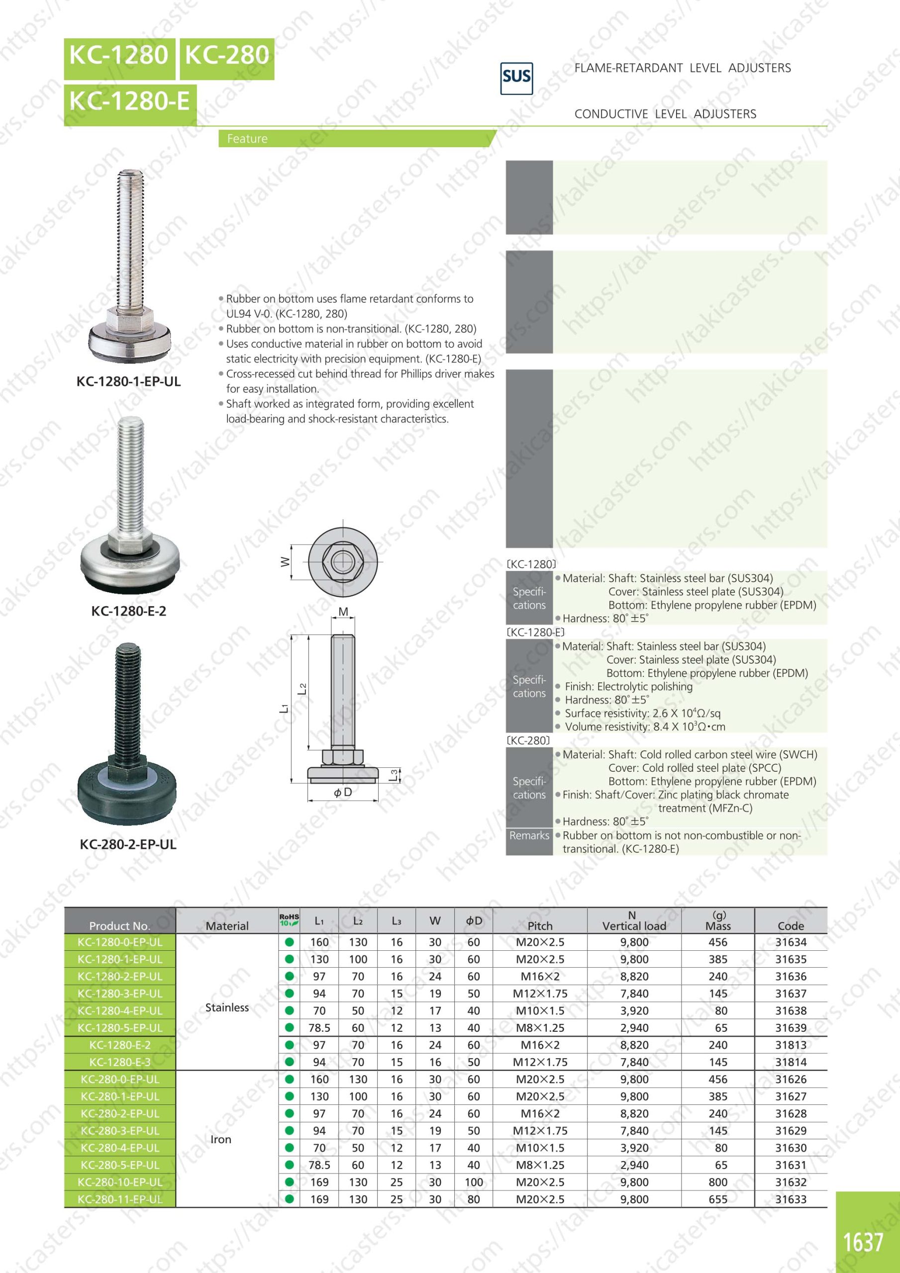 ●KC-280-5-EP-UL : Chiều cao 79 mm, ren M8, chiều dài ren 60 mm.